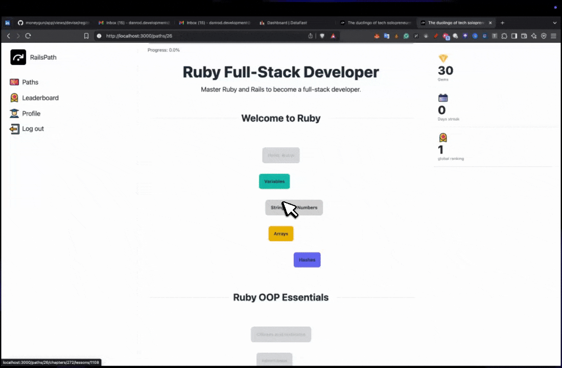 Level up your skills with points, badges, and streaks. Learning Rails has never been this fun.
